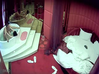 情趣酒店水滴摄像头监控TP大款胖哥和逼毛性感的骚情人按摩浴缸激情啪啪羡慕死屌丝